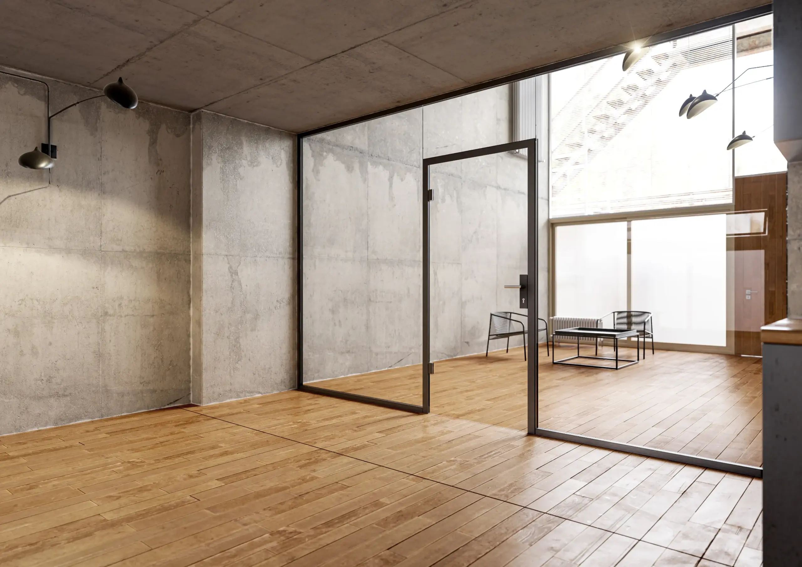 Rámové skleněné stěny a dveře